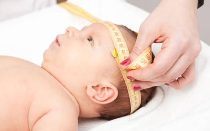 - Schuif de microtoise/stadiometer op het hoofd van het kind, waarbij deze zo dicht mogelijk op het hoofd wordt geplaatst.