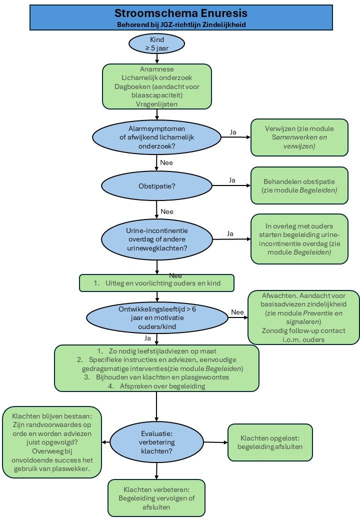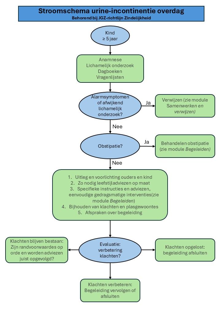De stappen in de begeleiding voor incontinentie overdag, enuresis, obstipatie en fecale incontinentie zijn stapsgewijs beschreven en inhoudelijk aangepast.