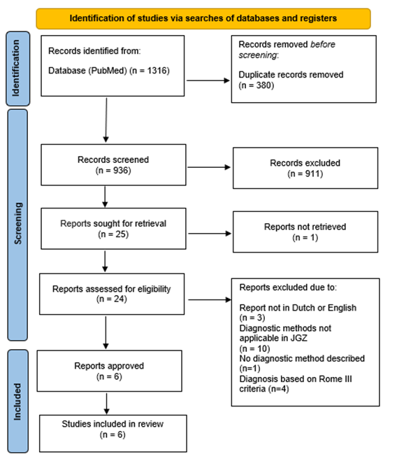 Individueel onderzoek (met voorkeur voor studies die in Nederland zijn uitgevoerd en in de JGZ) werd slechts gebruikt bij gebrek aan up-to-date systematische reviews.